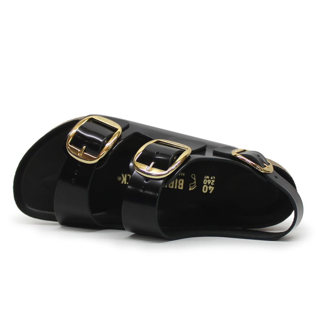 Birkenstock Milano Big Buckle Natural Leather Unisex Comfort High Shine Black Sandals