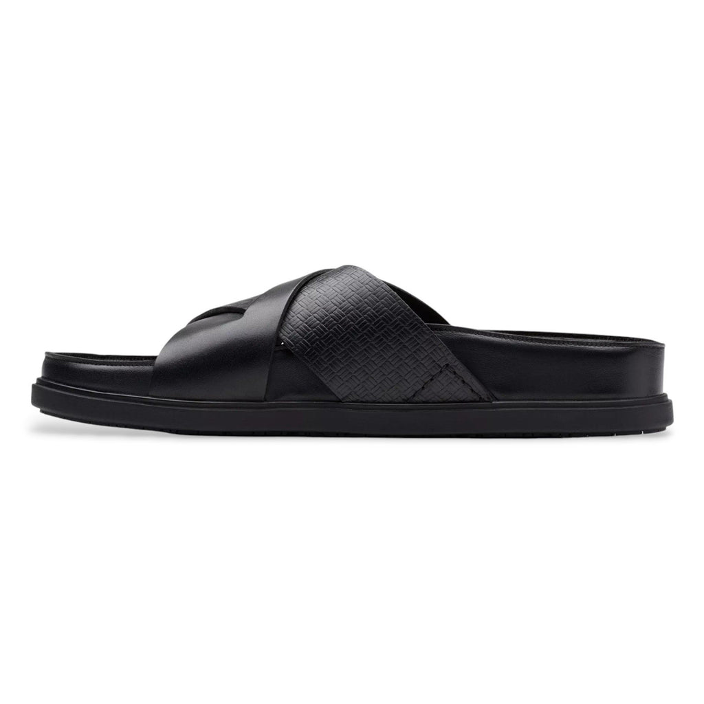 Clarks Torford Cross Leather Men's Slides Black Sandals