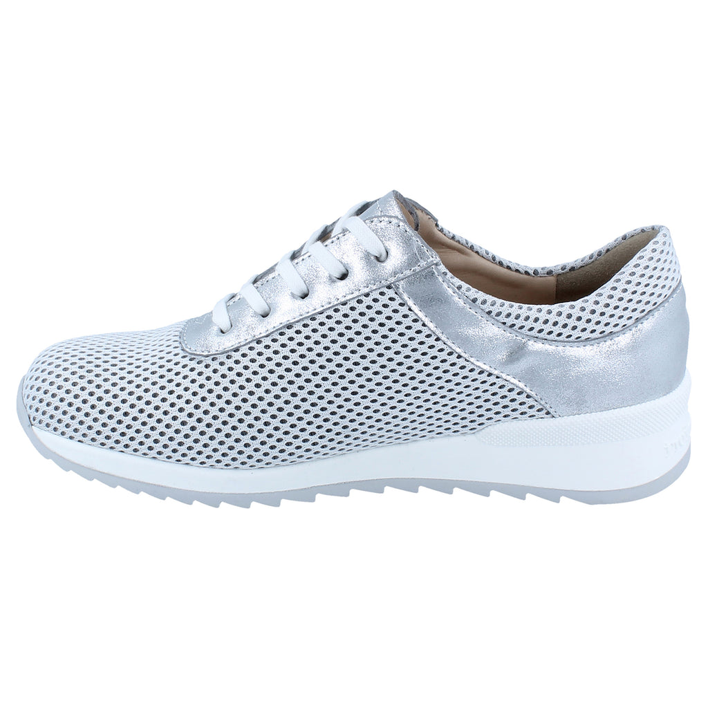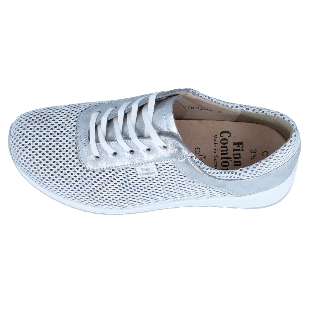 Finn Comfort Cerritos Leather Textile Women's Lace Up White Silver Shoes