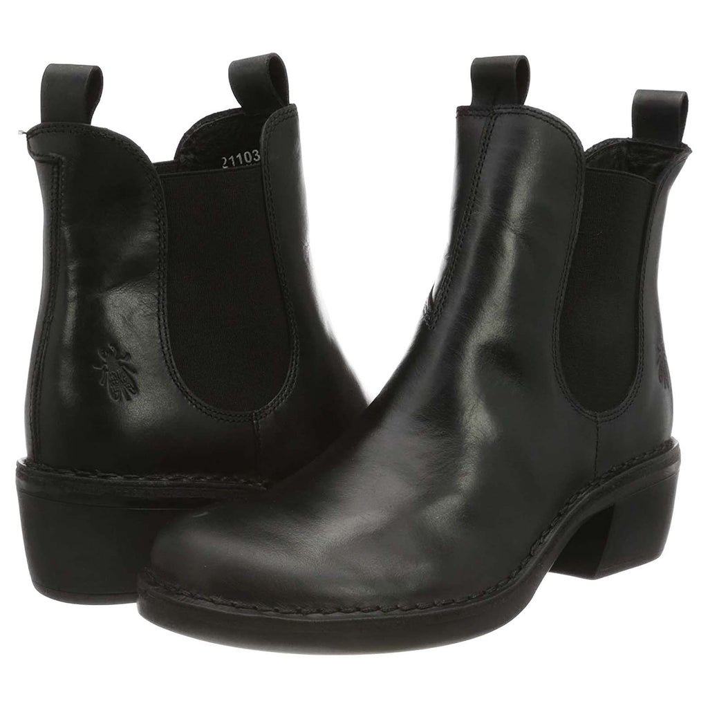 Fly London MEME030FLY Rug Leather Women's Slip On Black Boots
